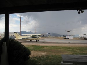 Somehow, it feels cooler now – the heat’s broken: we’ve got a plane, and we’re really going to fly. My checklist reverie is snapped by the sound of thunder, and I loop up to realize that the “coolness” wasn’t just a state of mind. Dark, towering cumulus clouds are rolling off of Mt. Hualapai to the south, carrying a curtain of rain toward us in their wake. I take my hat off, bow to the aviation gods, and surrender for the day. One last time, back to the classroom to write lesson plans. Tomorrow’s always a good day to fly.