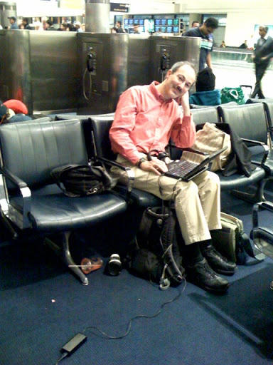We’re sitting here in the Newark airport, waiting to board Continental #48, nonstop to Mumbai. Where it’s something like 5:30 tomorrow morning already. Oh god, I am not ready for Mumbai. You know how I do in crowds, noise and chaos. I’m going to ask Devon to keep the camera running so that it’ll be well documented when I implode into a cowering blob o’ goo.