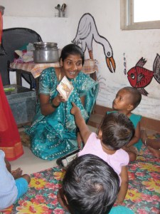 Devika Mahadevan (left), the 28 year old powerhouse driving Mobile Creche, and some of the mothers/teachers:
