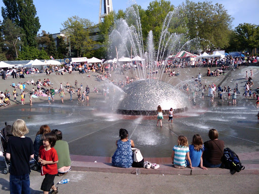 I didn’t feel entirely into the groove enough to join one of the existing jams, so I wandered away to the fountain, where I found a relatively quiet spot to pull out the guitar and start plunking. Mostly my own tunes, singing out to pretty much noone, and feeling a part of it all. A couple sat down next to me with their picnic; I flattered myself that they liked the sound. While trying to figure out what to play next, a kid approached and asked about the guitar: what kind of guitar is that and, can I play it for a bit? Sure! Apparently they don’t have Baby Taylors up here, because that was the main question I got – felt a little like a Taylor salesman handing it around.