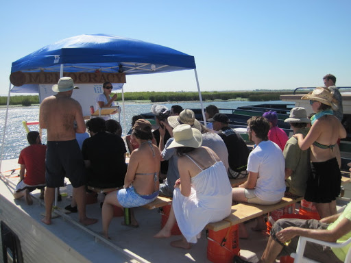 This, however, is where the radical self/inter-dependence of Ephemerislanders was just straining to kick in. Veterans observed that, while Ephemerisle itself had been canceled, there was nothing preventing a band of like-minded citizens from “spontaneously” gathering at the designated spot and deciding to raft up together for a few days of experimental community. Thus was born The Floating Festival That is Not Ephemerisle.