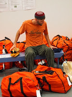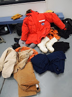 Other news: today was ECW (Extreme Cold Weather) gear day at the CDC (Clothing Distribution Center)! Awesome fun. For a gear junkie like me, it’s hard to put into words how much fun it is to slip on a parka that says “David Cohn – South Pole Station” on the front. The full ECW gear fills two bags, and our job was to make sure it all worked and fit properly. Three pairs of gloves, one pair mittens, canvas Carhart parka and bib pants, massive thermal “bunny boots” and a bunch of other stuff. And of course, “Big Red”.