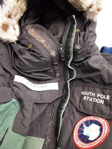 Except that I didn’t have a Big Red in my bags. I’d been given one of the special “Science” parkas, a closer-fitting green outfit. I’d remembered Beth saying something about those, that they weren’t quite as warm, and that some folks had had trouble with the zippers. I asked Dan and Ben, my patient mentors, and yeah, they agreed with Beth: Big Red was going to be warmer. But the Science parkas were considered very cool – they were the only ones that actually said “South Pole” on them. Waffle waffle waffle. It’s the South Pole – I decided I’d rather be warm than cool, and swapped “Little Green” out for the fabled orange parka.