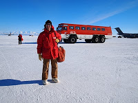 My first impressions of McMurdo are that, despite the inherent otherworldliness of the continent, it’s all manageable. That first breath of Antarctic air, walking across the ice runway to Ivan the Terra Bus? It’s cold but, this is not much below zero, F. I’ve had worse on a brisk February morning in Dartmouth. We’re walking on sea ice, roughly a quarter mile off the edge of Ross Island, with mountains of the mainland rising spectacularly off in three directions. The C-17 and two Hercs sit idling on the ice nearby, while a third comes taxiing in to park. I notice that he’s got his left outboard engine shut down and assume it’s to save fuel; I’m wrong, and discover the ramifications of this little detail a few hours later.