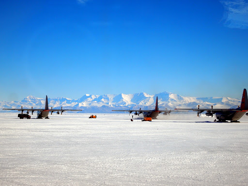 My first impressions of McMurdo are that, despite the inherent otherworldliness of the continent, it’s all manageable. That first breath of Antarctic air, walking across the ice runway to Ivan the Terra Bus? It’s cold but, this is not much below zero, F. I’ve had worse on a brisk February morning in Dartmouth. We’re walking on sea ice, roughly a quarter mile off the edge of Ross Island, with mountains of the mainland rising spectacularly off in three directions. The C-17 and two Hercs sit idling on the ice nearby, while a third comes taxiing in to park. I notice that he’s got his left outboard engine shut down and assume it’s to save fuel; I’m wrong, and discover the ramifications of this little detail a few hours later.