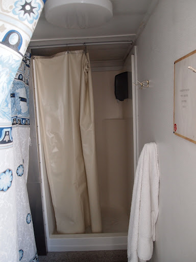 So the water’s expensive, and we try to conserve it. I’ll admit I was a bit surprised at how mundane the various water use appliances were when I got here. I’d been expecting super high-tech space-station-style toilets, etc., but by and large, they’re entirely ordinary. Station has modern “waterless” urinals like you see in many office buildings these days, but toilets are entirely conventional low-water flush style. Central bathrooms at Summer Camp are even more conventional – just the traditional push-to-flush. Showers? Entirely conventional, if quaint and uh, diminutive stalls. I’m inferring that none of the folks who first inhabited the Jamesways were over 5’2″, and have found it minimizes my overall frustration with the process if I simply stand on my knees the whole time.