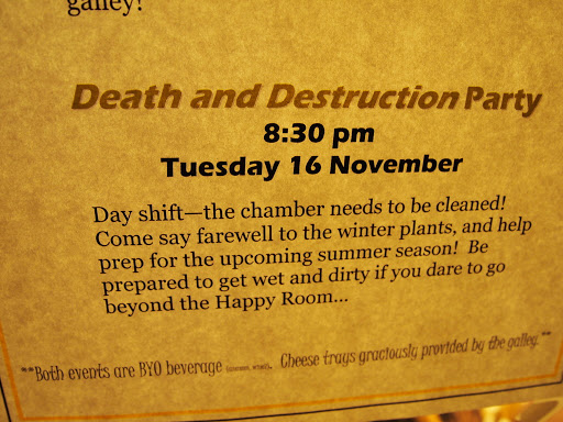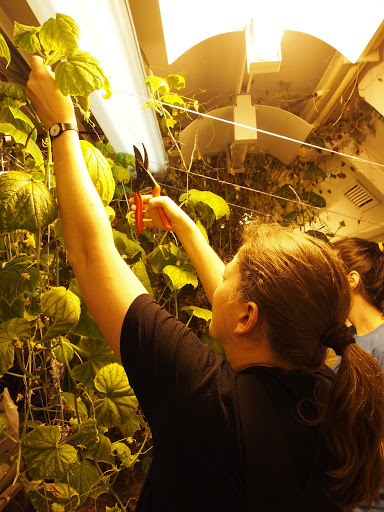 About 8-10 people showed up to help Joselyn – Jens and Freya the physicists, Kevin the network guy, Ken from Ice Cube, Aaron the chef and Rachael the GA. Reaching, snipping, pulling and stuffing the earthly remains of lettuce, kale, cukes, tomatoes and whatnot into bags. Peeling, washing and stacking the hydroponic trays. And nibbling, sipping and chatting about where we came from and how we ended up here, together at the bottom of the world.