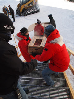 But now here, awake, it really is Friday morning, and everyone’s been gearing up for Thanksgiving. Big pull of freshies came in on the last flight yesterday, along with the ordnance they’re going to use at an unspecified date to implode Old Pole next week. Still no mail, though. Not for over a week. As I understand it, there’s traditionally been a big push to get mail in right before Thanksgiving, but with all the weather cancellations, the manifest has been backed way up trying to get people and supplies in, and personal mail’s been bumped down the list. I can’t complain though – we haven’t had any plummeting tractors to deal with.
