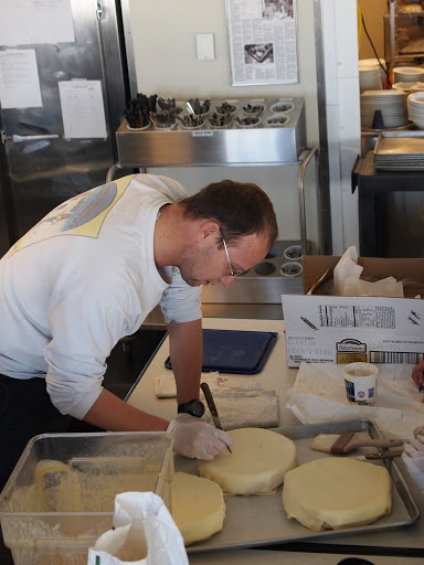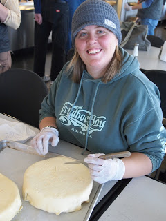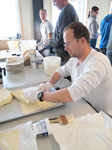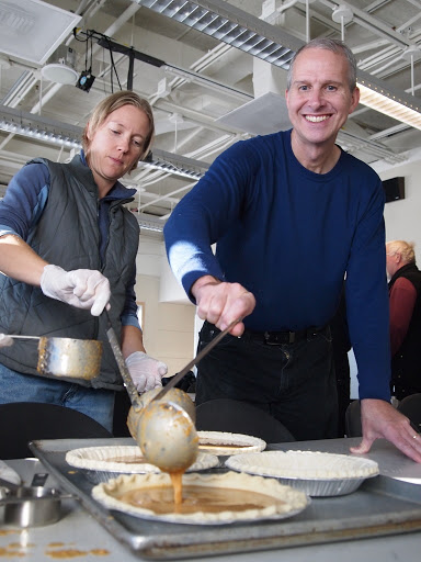 | Joselyn and Ken fill the pies |