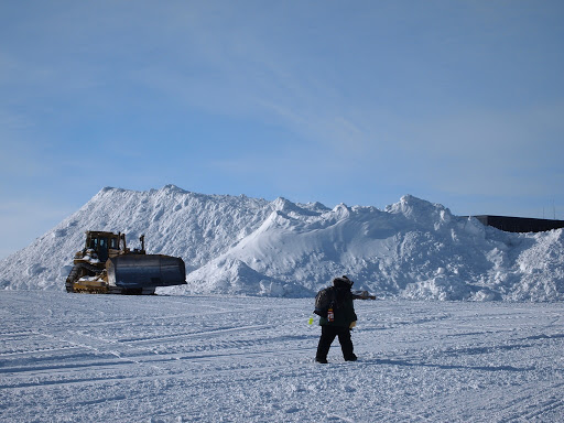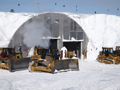 | With lots of snow and big machines |
