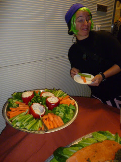 | Haley eyes the color-coordinated appetizers |