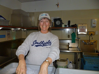 | Linda earns serious karma in the dish-pit post feast. |