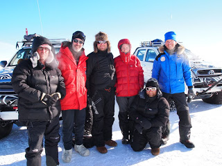 Anyhow – eventually it was time to go. Gisli insisted on giving us a ride back in one of the team’s 6×6, rolling down the end of the skiway and pulling up in front of the ceremonial pole to drop us off.