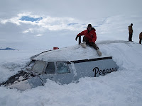 At lunch I heard about a “Pegasus” tour. The Pegasus airfield, an hour out on the permanent sea ice to the southwest of MCM, is named after the Lockheed Constellation that crash-landed there back in 1970. Oh heck, I said, sure, I don’t have any other plans.