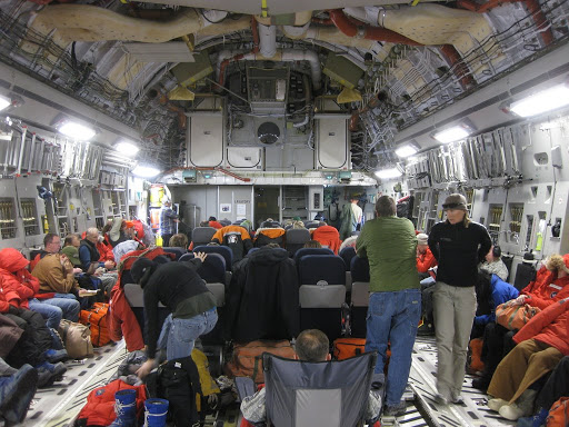 Some time this evening, they’ll drop the ramp and lead us off the C-17 – a massive, cavernous warehouse of a plane – into New Zealand. I understand that Beth likes calling the C-17 “the magic tube”. You climb into it, wait a while, and when you come out, you’re somewhere else. McMurdo will be far behind, and we’ll stumble out into the inconceivably warm darkness of a Christchurch night. Night. For three months, the sun’s tirelessly pinwheeled around the sky, never dipping even slightly for the horizon. Night. And cars and trees and grass and people just walking around. I understand that if you go to the botanical gardens on any autumn afternoon, it’s easy to tell the returning Polies – they’re rolling around in the grass, pausing to look up at the sky, giggling a bit and doing it all over again.