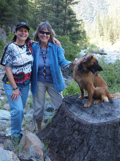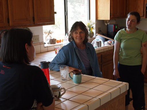 Linda came out to pick us up at the airport, gave us a quick tour of town, and brought us home for coffee and fresh-baked chocolate chip cookies with her housemate Meredith. Then off for a stroll down the Feather River to give the dogs a bit of exercise, and back for more cookies and conversation.