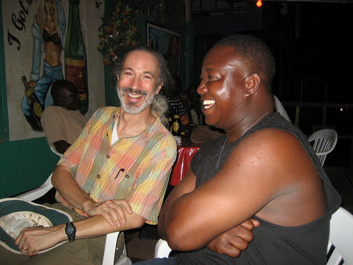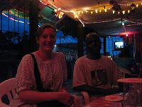 I guess I kind of left everyone hanging about our accommodations. The morning after the earlier-described Night From Hell, Susan and I stumbled down to the breakfast area. We’d met LtCdrs Ketchum and Ketchum from the US Embassy in Monrovia the afternoon before (yes, they’re both Lieutenant Commanders – she’s with the Coast Guard, he’s with the Army). They were on their way to Harper, in the Southeast, estimating that they had another day and a half’s drive ahead of them, so they’d brought “hotel camping” gear along with them, and were making coffee and oatmeal on the camp stove they’d set up in their front room.