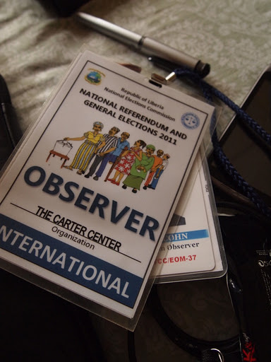 9:30 p.m. the evening before “E Day”, and we’re about as ready as we can be. We’ll be up at five, on the road at six, and if all goes according to plan, we’ll reach Mongbain, our first stop of the day by seven, in plenty of time to observe the polling place opening procedures. The Liberian Election Procedures Manual specifies in painstaking detail who will do what and how tomorrow in every polling place in this country, in what order the seals on the ballot boxes are to be verified, applied and documented. What latitude the Ballot Controller has in folding the stamped ballots before giving them to verified voters. On which finger of which hand voters will have the I-have-voted ink applied, and when. And – since this is a post-conflict country – what to do if they don’t have that finger, or any fingers, or any hands. How the Ballot Box Controller should shake the box to get more room if it begins to clog (the BBC is not supposed to touch the actual ballots, even to give a push to one that didn’t go all the way in).