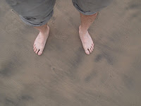 And the waves. The water is surprisingly warm, so I hike my travel pants up, tie my shoes together and throw them over my shoulder. It feels right, strolling along at dusk, just leaving footprints in the wet sand. I manage to shake off the hawkers – all but Kofi and Nahya- with a simple declaration that their beads/paintings/bracelets/bowls are lovely, but I’m not buying anything tonight except dinner. They all want to know your name, to welcome you to Ghana, to be your friend and teach you a couple of Twi phrases before launching into the painfully stereotyped “So, maybe you want to bring back good memories of Ghana…” pitch. Yeah, thanks, but I’m not buying anything tonight except dinner. Dahde (or was that “Daddy”?) interrogates me on what kind of dinner I want to buy, and promises he’ll take me to the best place on the beach for it. Oh god – I’ve already ditched him and his maybe-a-pretty-hat-for-your-wife spiel twice; the prospect of him hovering over me while I eat ties knots in my stomach. I explain that I’m eating alone, thankyouverymuch, and he says no problem. But still wants to walk with me.