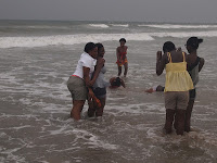 I settle into a beach chair at “No. 1” and order the this-may-be-a-mistake grilled fish and vegetables (I’ve been hauling around that dose of Cipro for ages now – maybe I’ll finally get a chance to use it…). Vida, who had flagged me down with more charm than salesmanship, takes my order up the beach, then comes back and plonks down on the chair across the table. She, like everyone else, wants to know where I’m from, how long I’ve been in Ghana, and how I like it. I realize that I can actually enjoy the conversation for once; she’s made her sale of c15 for the fish and another c1 for bottled water – she’s talking to me now because, well, there’s a white guy sitting at her tables and she’s curious.