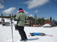 D and I got in some good runs, too. Snowed just enough last night to leave a few inches of powder at the ungroomed edges of the slopes, so Devon got to cruise in her comfort zone while I played in the margins.