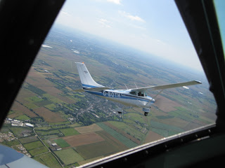 Al suggested that we go off and have some fun for the second sortie. His friends Dale and Andrea do aerial photography from a 182 – would I like to get some pictures from the air? They’d like to have their gas covered, but that was about it. Interested? Absolutely. We rendezvoused over Cambridge and held formation for a few turns while Andrea squeezed off some shots. Okay, honestly, Al held formation (remember, he’s the fighter pilot). I just smiled at the camera and tried to look like I was doing serious pilot stuff.