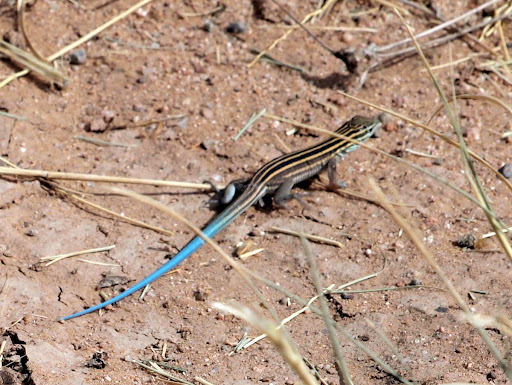 As we walk, Miranda spots a lizard – there are lots of them here amid the scrub grass – with a bright green tail. It’s a different green than the Trinitite, closer to the intense turquoise that adorns every man-made creation within two hours of Albuquerque. We make the obvious speculations about how he got it, as she grabs my camera and tries to maneuver for a clean shot.