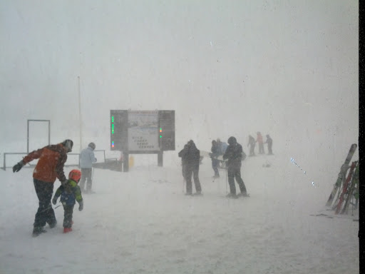 Overall, it was a win. I spent the morning skiing with Zivi, a Canadian woman whose husband had moved them to Silicon Valley for a startup job. She was still waiting for her work visa, so while he revolutionized the something having to do with gamified-social-4G-immersive-webfoo, she was exploring what the state had to offer. The storm didn’t come until later, so our skis spent the first hours chattering down the broad hard-pack avenues between High Camp and the base. We stopped for an early lunch, and by noon, the first flakes were falling.Zivi retired early in the afternoon; it was the first day of the season for both of us, and the rapidly accumulating powder can take a lot out of you if you’re not accustomed to it. Then I fought the wind and flying birdshot snow back to Shirley Lake for one or two more runs.