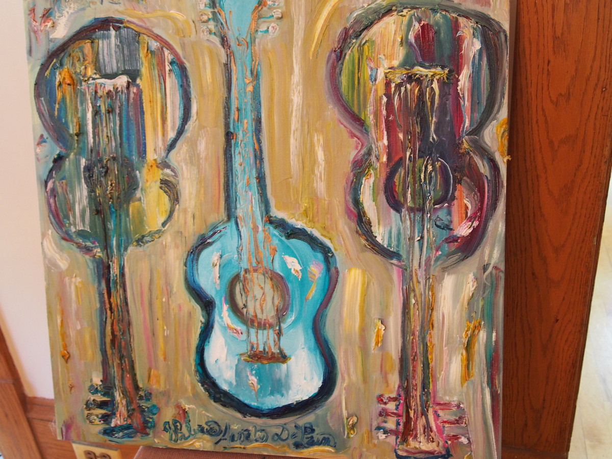 The gifts: pottery, hand-made by to giver, paintings, welded sculpture, and half a dozen CDs, recorded, of course, by people in the room.