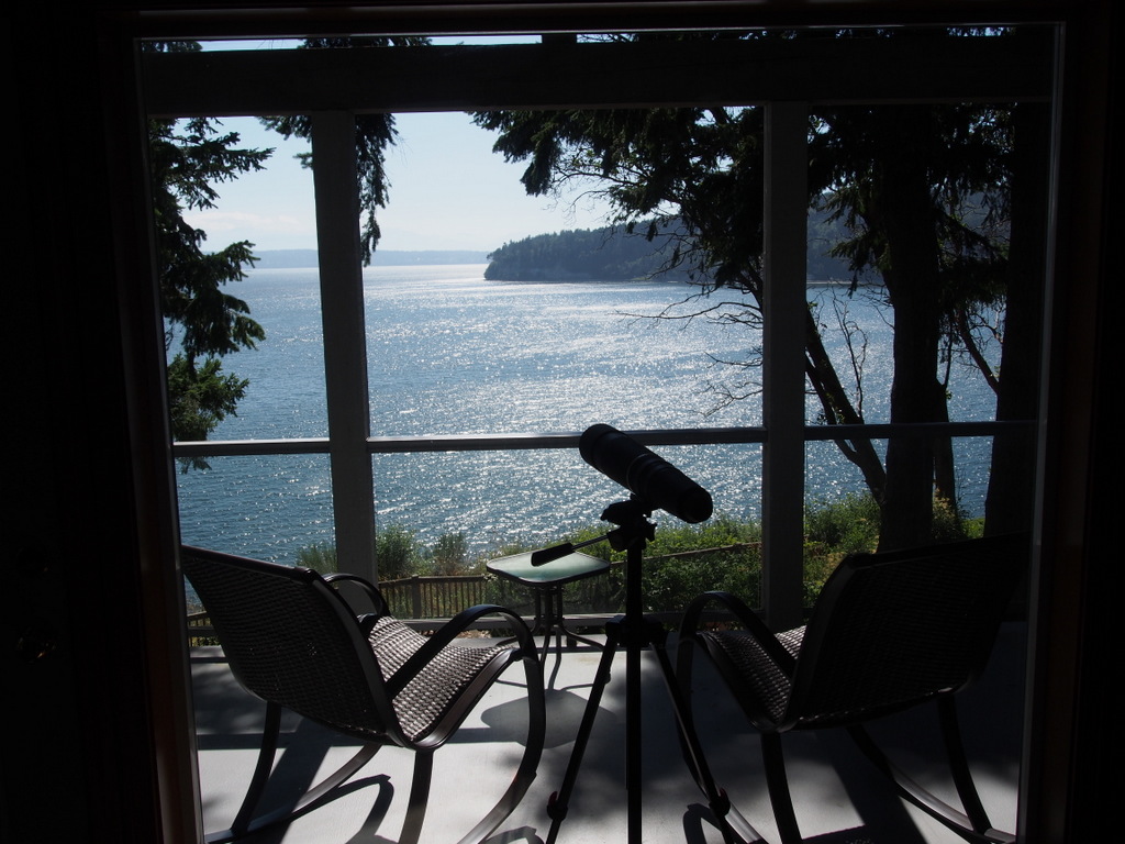 A man could get used to this. Lauren and Stephen have a little 15 power telescope set up on the porch, overlooking Elger Bay, west of their perch on Camano Island. The kids are all plugged into various electronic entertainments – that’s fine, it’s what vacation is all about – while I try to catch up on the perambulations of the past few days. Letsee – three islands in three days, even if Camano is only an island by dint of the bridged tidal slough separating it from Standwood on the mainland. It feels like an island, and that’s what makes it special.