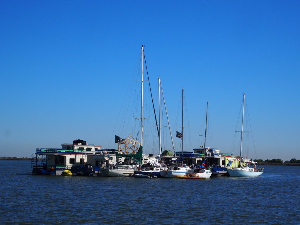 That was this morning; it’s now late afternoon, trailing off a day of lazy exploration and socializing. So it’s probably a good time for a little context about our part in the Ephemerisle. We’re historically the family boat – a.k.a. “Breeder Reactor”. This year, those who have found themselves in the position of organizing the raft-up have decided that we’re going to try to coalesce the boats into a series of islands, each of which will have a self-appointed “admiral” (see previous post about the need for a centralized authority, even in explicitly self-organized gatherings like this). Then, in the spirit of its Seasteading origins, boats can decide which island they want to attach to, voting with their feet. Er, flippers.