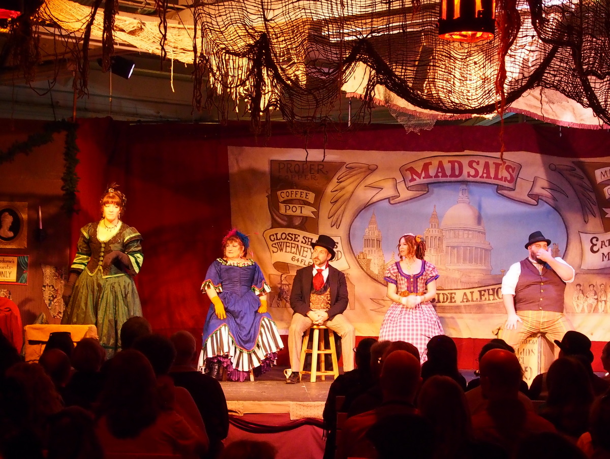 As I said, it’s just like the Ren Faire, except you’ve got stovepipe hats and hoop skirts. Theater troupe urchins run through the crowd and are nabbed by their compatriot shopkeepers for impromptu on-the-street drama, and the dance halls are filled with all sorts of music and demonstrations. There are wandering carollers and buskers, sea chanteys and occasional processions of royalty. And I’ll dare say the food’s a lot better.