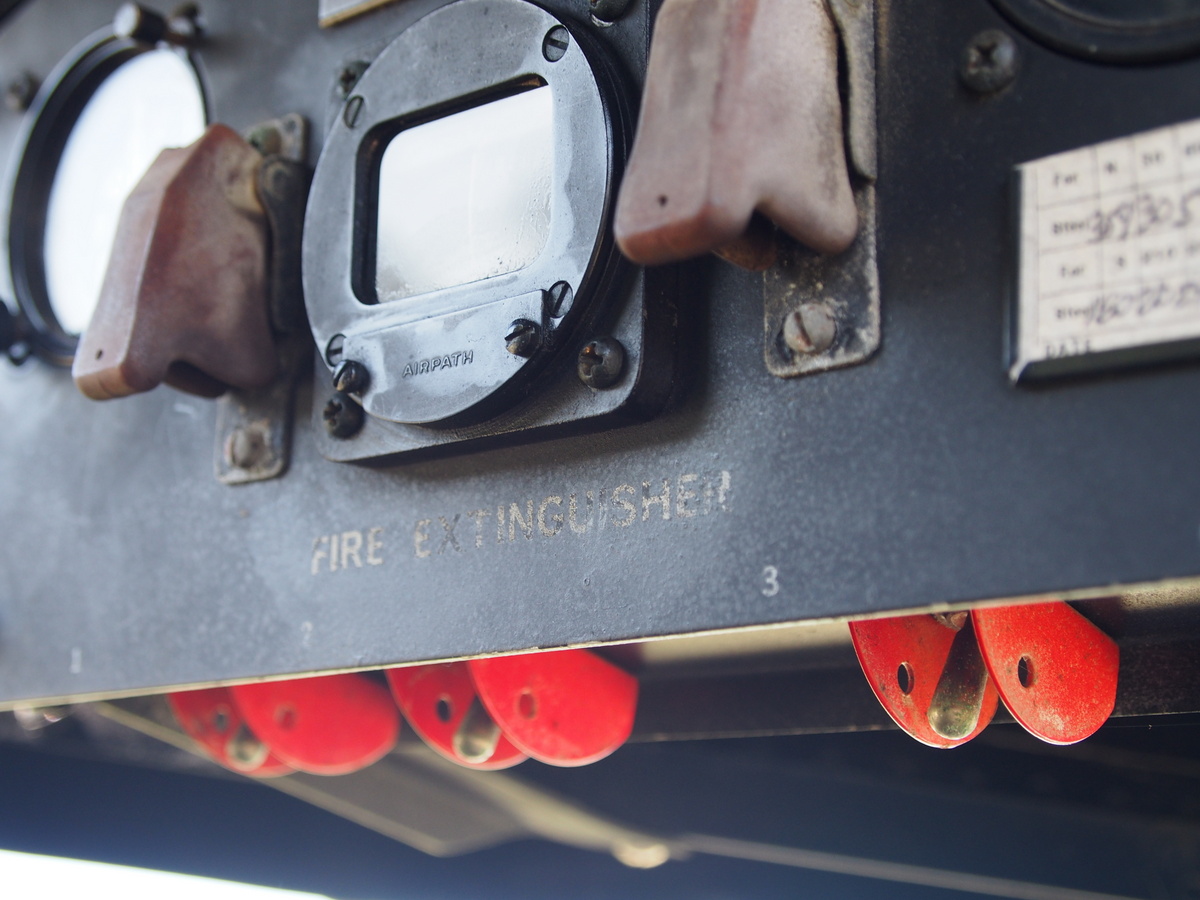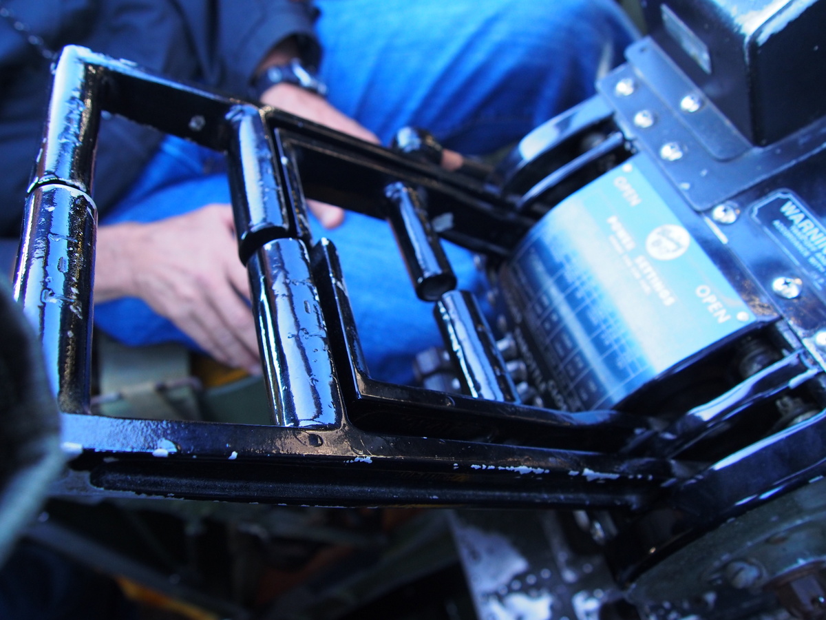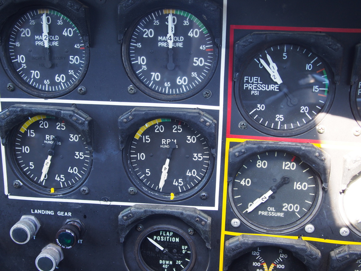 There are some very clever bits, though (non-airplane folks? You can skip this bit.) For example, it can be a bit unwieldly to mess with all four of the actual throttles separately when you need to apply differential power. So the actual throttle quadrant is a stacked arrangement with three different places to grab (see photo over there ->). You grab the top pair of levers and you get engines 1 and 4; grab the bottom pair and you get 2 and 3. Grab the middle and you’re tickling all four of the R-1820-97s, with 32 36 cylinders and 4800 horsepower at your fingertips. Pretty cool.