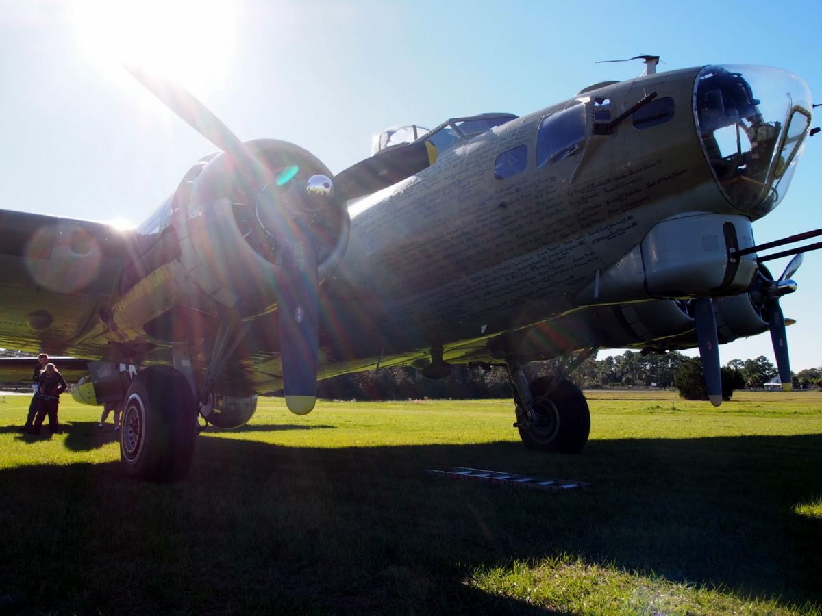 Then it was over to the B-24 which, impossibly, has even more levers and knobs than the ‘17. The rivalry between the Collings pilots who fly these two is a thing of beauty: “Nah, I don’t have favorites. I just prefer flying what’s obviously the better airplane,” and “Hey Jim – when are they gonna let you fly something without training wheels?” Maybe it’s my taildragger bias has always led me to hold the B-17 closer to my heart, in spite of the ribbing I get when I admit this preference. Not that it doesn’t have its faults – I think it was Mac, the primary instructor for the Collings B-17, who said “The B-17 doesn’t do anything fast. No, scratch that. The B-17 doesn’t do anything good fast. The bad stuff it’ll do in a hurry.”
