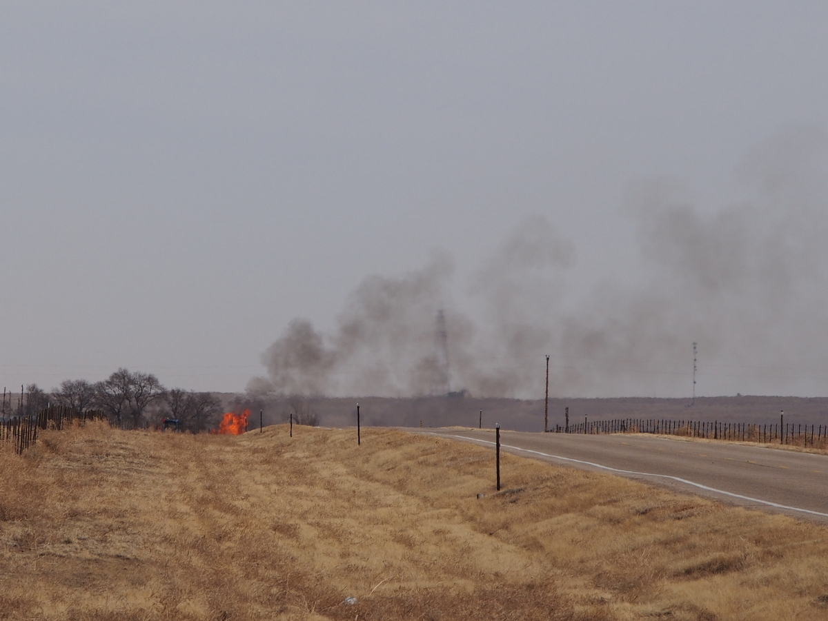 Oh right: the fire: At some point, the gray-brown cloud half a mile east along the road took on a distinctly “smoky” appearance, followed shortly by visible flames at roadside. We’d reached the point of becoming somewhat concerned, so Brian and I did what any responsible parent would: we sent the boys to investigate. Turned out to just have been someone clearing their ditches (what could possibly go wrong?), but it did provide a little excitement.
