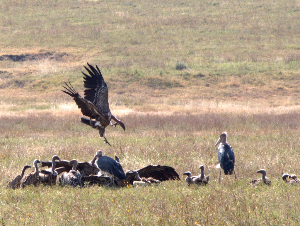 Remember what I said about just throwing away all those photos from the previous day? We had another one of those: wildebeest and zebras so thick on the road that you just couldn’t get through. Jackals taunting lions, baboons flashing their shiny behinds at hippos, hyenas. Lakes full of flamingos, and the sky full of storks and vultures. The whole thing became a game of “How many species can we get in one photo?” (winner was six: hippo, baboon, zebra, wildebeest, oxpecker and Egyptian geese; the jackals wouldn’t cooperate)