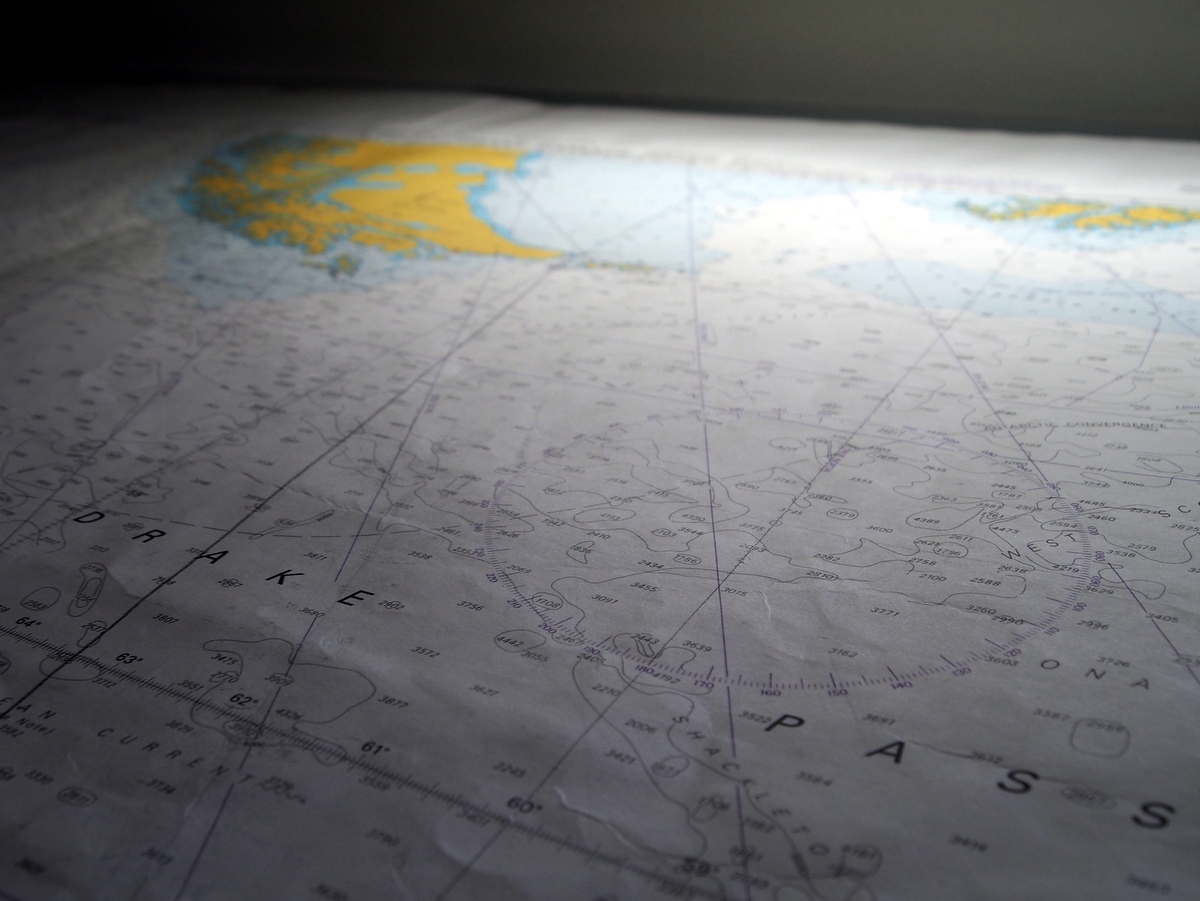 We’re one day into the Drake crossing, southbound for Admiralty Bay on a heading of 179 degrees, one shy of true south. And I’m lucky – it’s a “good crossing”, according to those who have done a few. Sitting snugly in aft control, watching rolling hills of black water break against the side and spill across the back deck, I can’t muster the curiosity to wonder what a bad crossing looks like from this vantage.