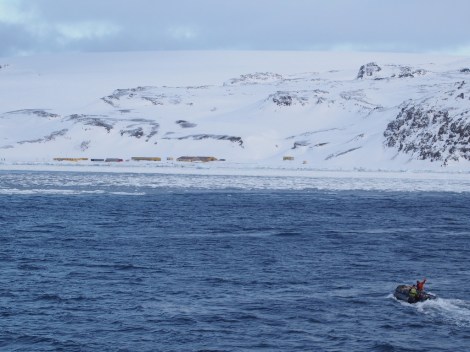 We’re in Admiralty for two reasons: science and support. We need to anchor in a shallow, relatively still place to calibrate some bathymetry equipment, but we also have a pallet of freshies – fruits and vegetables – to drop off for the Polish Arctowski Station on one of the inlets in the bay. Arctowski is a small base, and they hadn’t seen fresh food since February. Our research team also owes them a favor or two: during summer months, NOAA scientists at the even smaller (and ironically named) Copacabana base one inlet over are welcomed at Arctowski for hot showers and “social activities”.