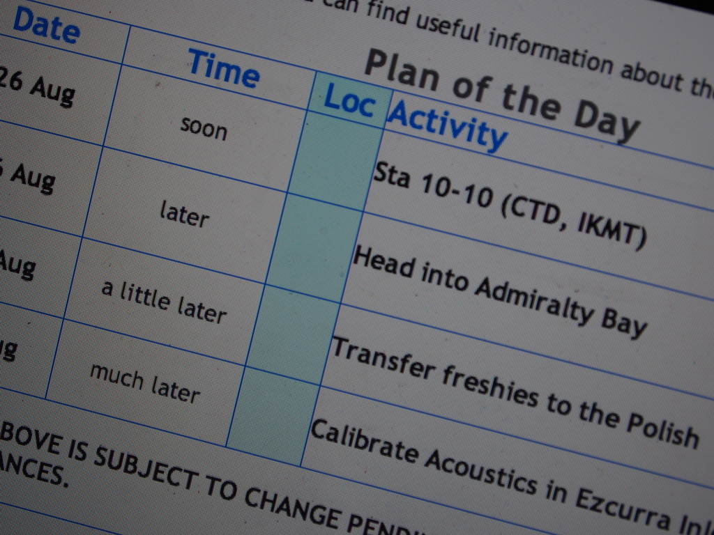 Today was blissfully a quiet morning in the ELab – by two hours into my shift I’d finished reconfiguring the virtual machines we were swapping in, upgrading the firmware on our backup fleet broadband modem, run the daily processing scripts and caught up on email. I actually found myself (knock on steel) bored. Which, I must add, is a lovely feeling after the crazy first week underway. Don’t worry, I wasn’t bored bored – I don’t get that kind of bored easily. I just found myself looking for more things to do. Actually did a little bit of coding, trying to see if I could cobble together some image processing software I had on my laptop to differentiate ice from open water in image captures from the bridge cam (note to my more geeky friends: I know nothing of image processing; if you’ve got something like this in Python or Octave, don’t be shy – it would be an enormous help to the NOAA folks to have this running on surface ships down here).