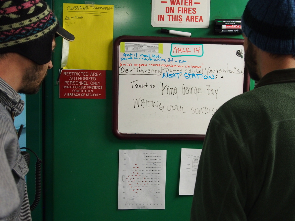 Overall, it’s been a good couple of days – the crazy oscillations of getting started have tapered off and, our pre-dawn lull aside, everyone seems to have found their groove. Assuming the anchor holds and the wind doesn’t pick up, we’ll be on our way by late morning, running the grid, dropping CTDs and towing nets by afternoon. Just another day on an Antarctic icebreaker in the dead of winter.