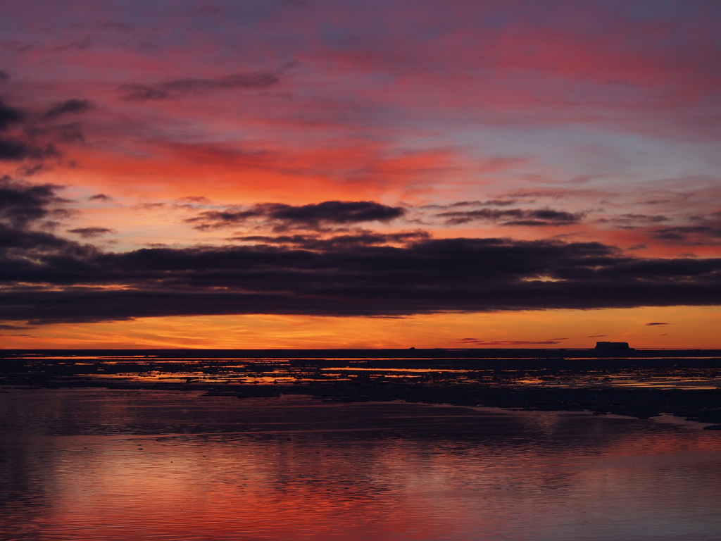 A big iceberg on the horizon. That thin line is probably 10 miles across. Goes up 150 or so feet, and probably 800 down.