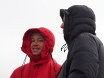 And yesterday? Yesterday I wandered out to the bow and hung out with Elliot and Jen for a bit when we got off duty, hoping for a clear view of tiny Aspland Island (best candidate for a secret mountain fortress ever), but just watching the changing light on the clouds and water. We were a speck of red, green and yellow in an immense world painted with more shades of gray, more stunning contrasts of light and darkness than a camera could possibly capture. But yeah, you know that didn’t stop us from trying…