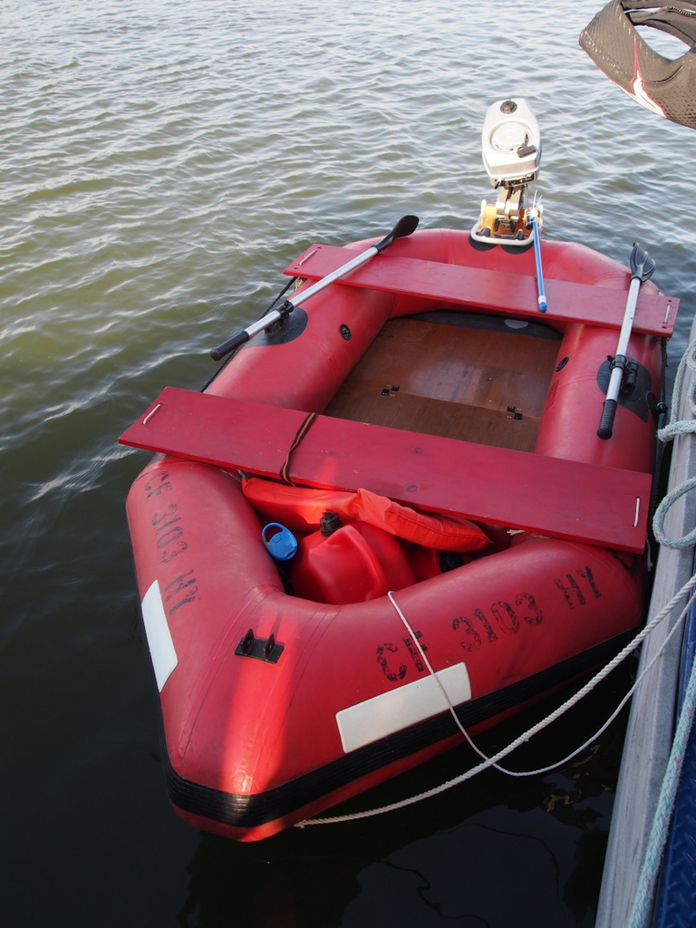 OLYMPUS DIGITAL CAMERAWell, to be precise, I have the Infernal – I think I’m the only one on our boat who has been interested (or foolish) enough to try to get her to work. The Infernal is a bright red 9′ 6″ West Marine inflatable dinghy, ostensibly powered by an ostensible 3 hp outboard motor that I suspect is trying to kill me. After today, the feeling is approaching mutuality.