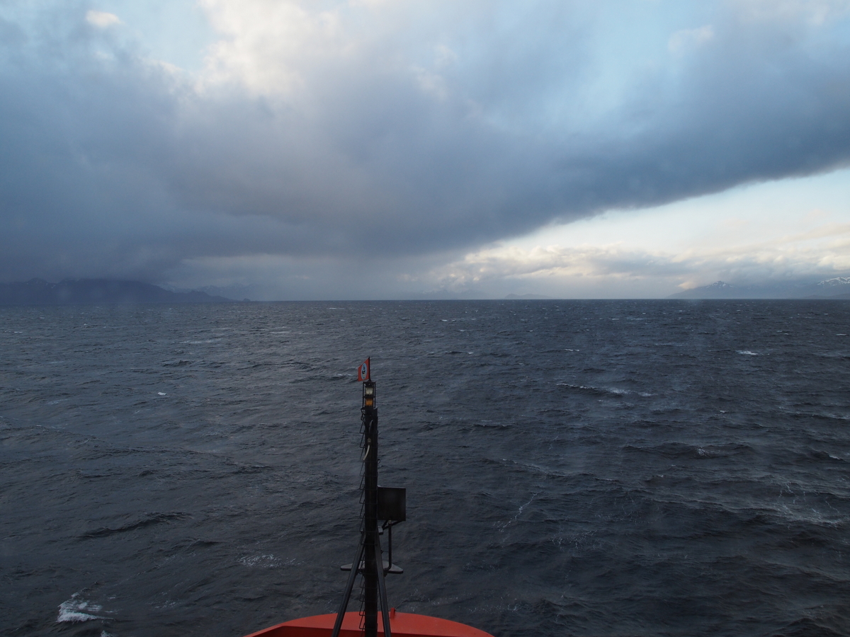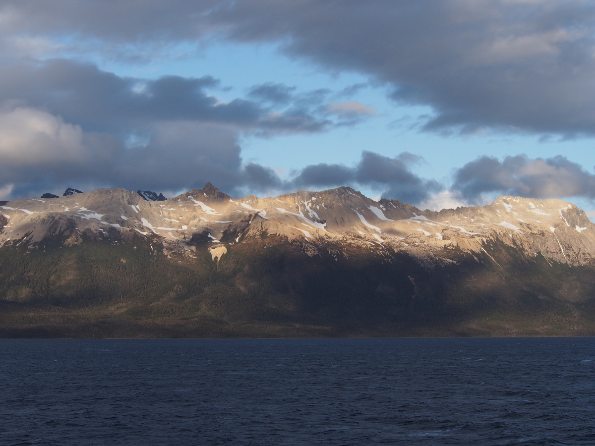 An enormous white cross on the distant mountaintop marks the southernmost point of the continent proper, where the spine of the Andes subsides and finally succumbs to the Southern Ocean. Other than the cross, which looks no larger than a front-yard Christmas ornament from here, there has been no sign of human existence since morning – only towering, snow-covered peaks and wind-tossed water. We’re picking our way out through the fragmented maze of islands that make up the western end of the Strait of Magellan. Tomorrow, noon, we will bid land goodbye and venture south for a month of the open sea, bobbing around in the Drake Passage.