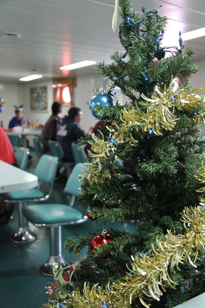 Last year, Christmas arrived at a lull in the science while we were buckled in for a storm mid-ocean. It felt like a holiday: we were already more than halfway through the cruise by then and had achieved that sort of bonding that is fostered by sea voyages and other inadvisable adventures. This year we were still tied up at the cargo pier and trying to get settled in.