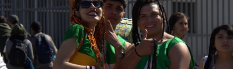 Hang on. This visually-evocative musing has been preempted by another, much-less probable one in which I’m riding in the back of a car driven by two total strangers – both beautiful women, by the way – with a mounted police escort of two motorcycles, going the wrong way down the parade route of Valparaiso’s Festival of a Thousand Drums. And I’ve only been in town for what, like 15 minutes?…