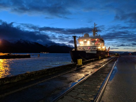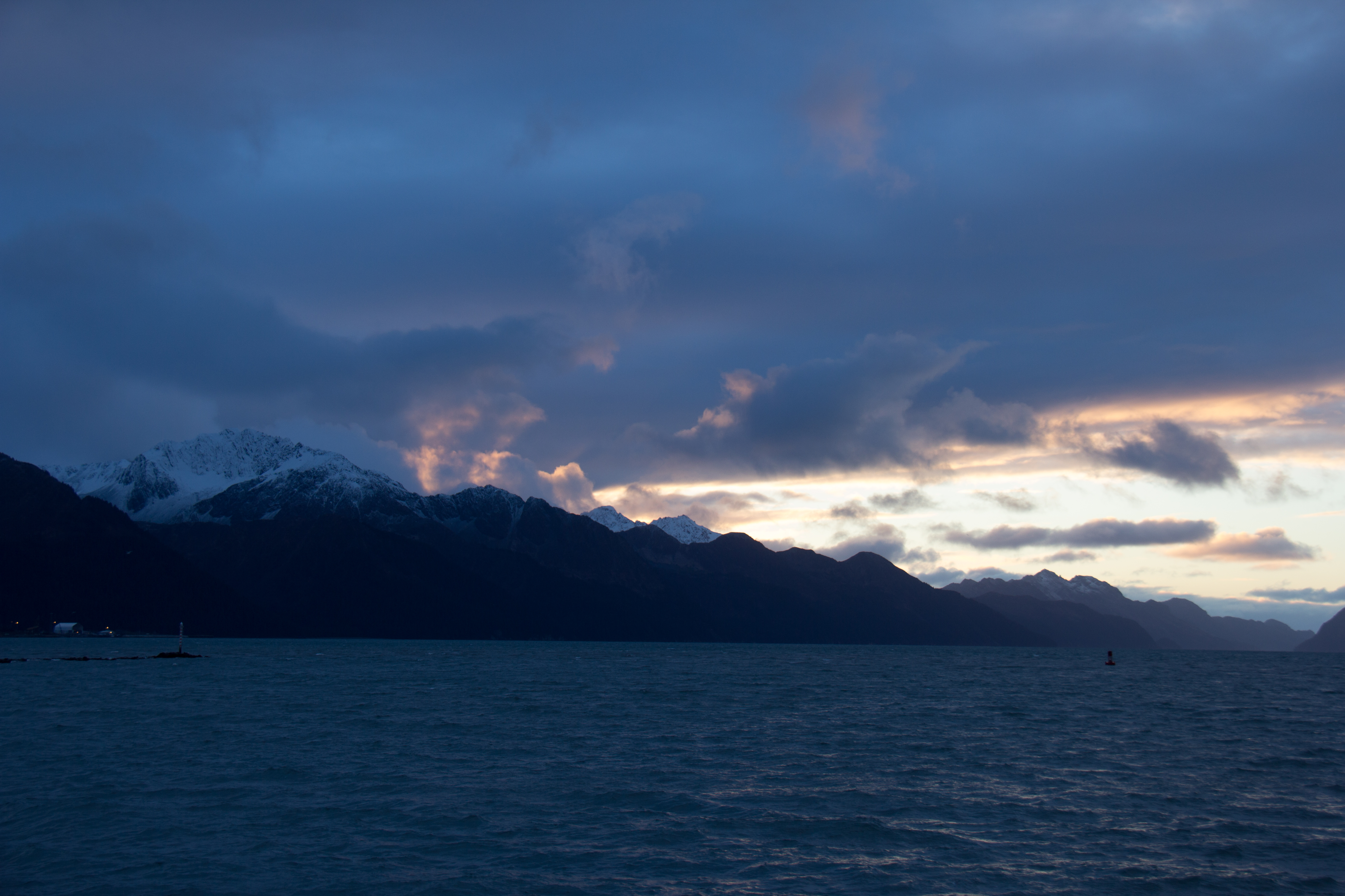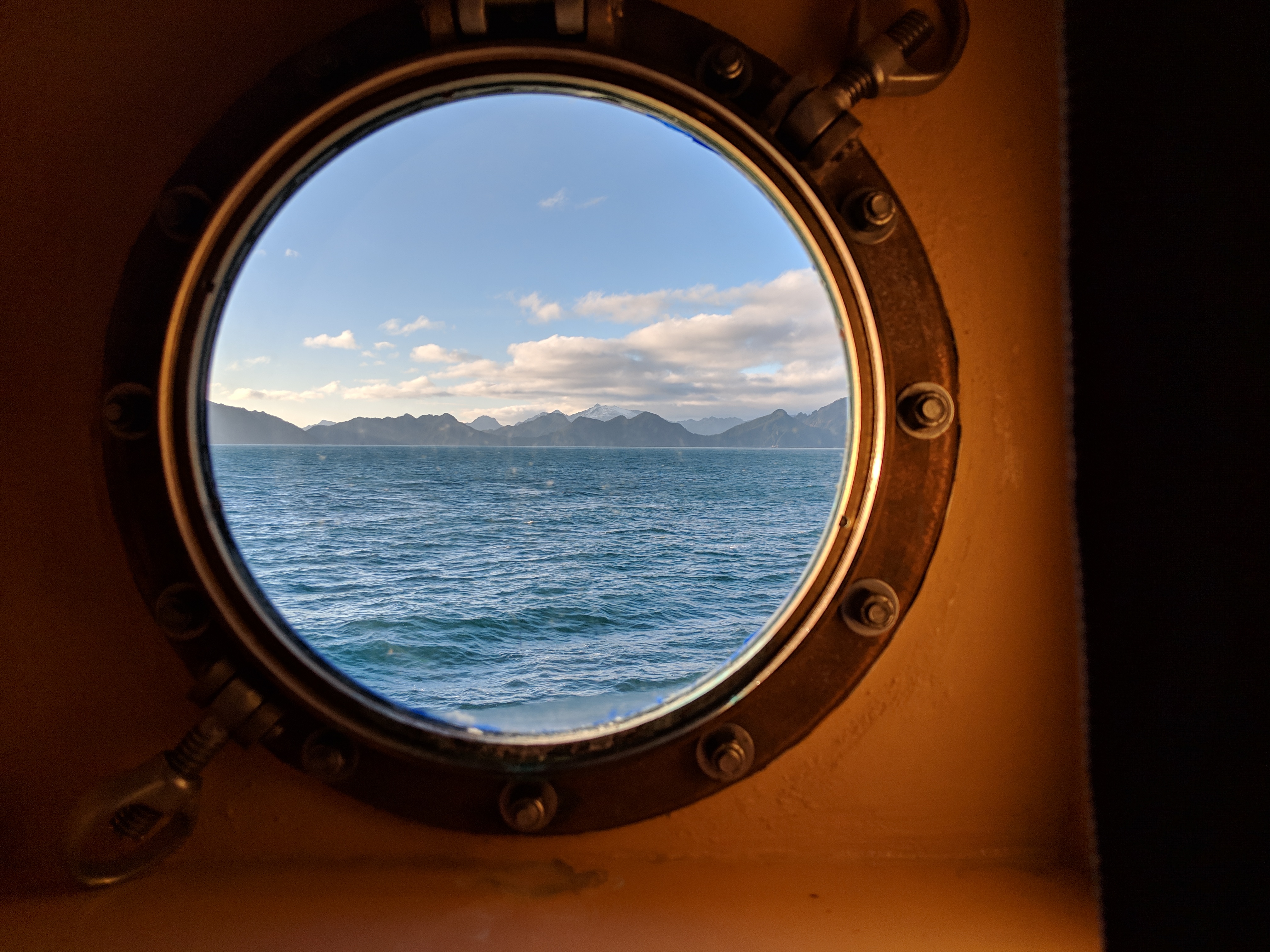 It was technically after dawn when we slipped away from the pier yesterday morning. The mountains of the Kenai rise on Resurrection Sound like some after-credit scene from Waterworld: craggy Himalayan peaks somehow inundated halfway up their shining white flanks. We’re outbound, into the open sea.