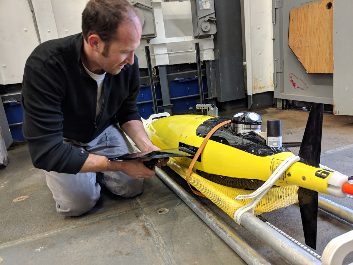 Even better, out on a boat in deep water is where we get to finally do some Science(tm)! Our chief scientist, Eric D’Asaro, is with the University of Washington’s Applied Physics Lab, and he’s interested in how ocean currents flow and mix. The main point of this cruise is to go out and retrieve some floats and gliders that have been bobbing around the gulf for the past [x] months and deploy some new ones in their places. We’ve got Mike and Avery from APL heading up the back deck work with the able assistance of Sikuliaq’s crew, and Melanie and Alexis heading up the “wet” work, drawing samples from the CTDs we’re doing at the pickup spots for calibration. (A CTD is nominally a “conductivity-temperature-depth” probe you lower from a winch, but in practice here, their main value is the water samples they bring back from each depth you stop at.)