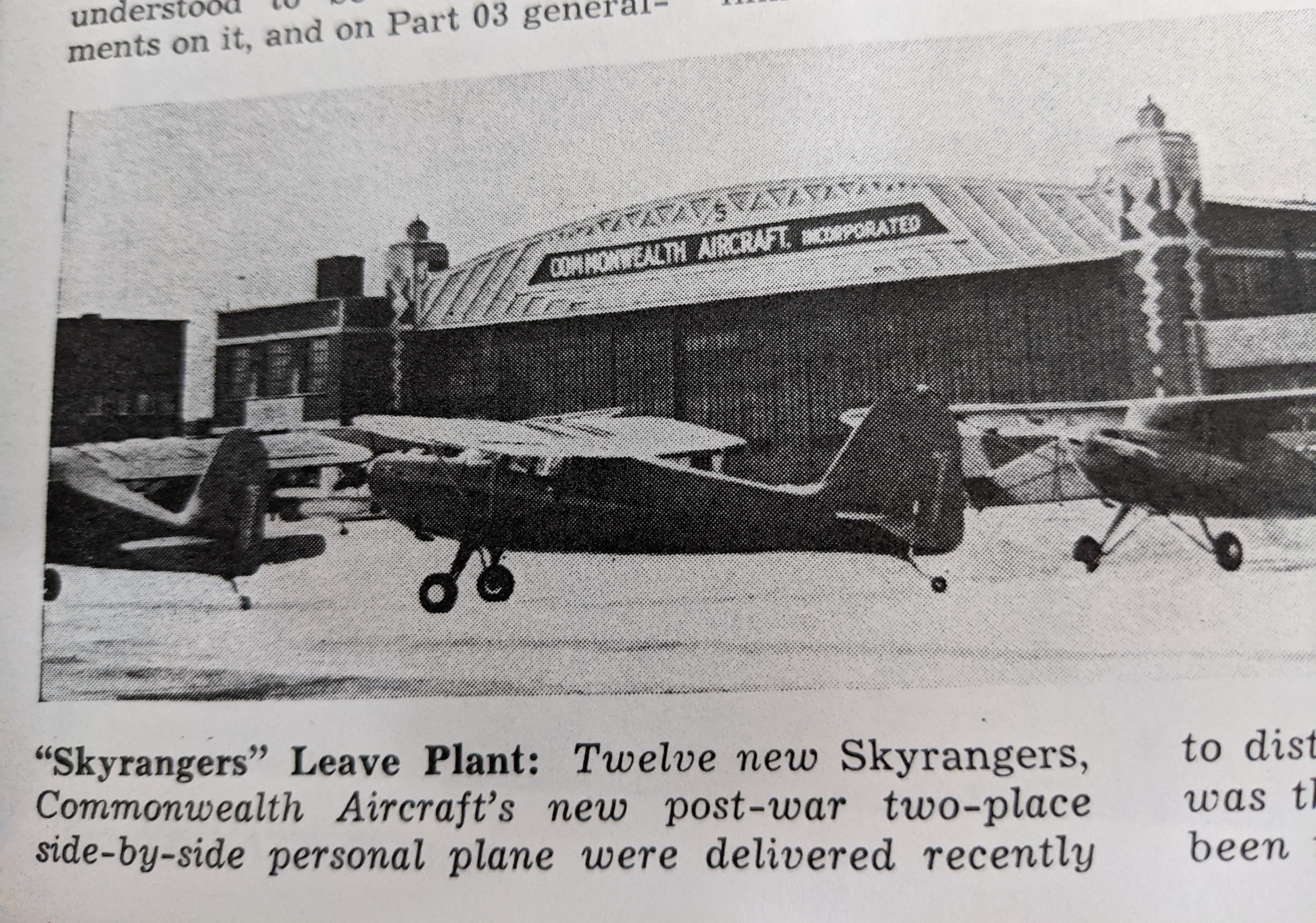 What I am going to write about is January 21st, 1946. Seventy five years ago today at the Fairfax County Airport in Kansas, a factory test pilot only remembered by the initials H.E.L. (license #60402) climbed aboard airframe #16 of the newly-revived Commonwealth Skyranger line and fired it up for its first test hop.