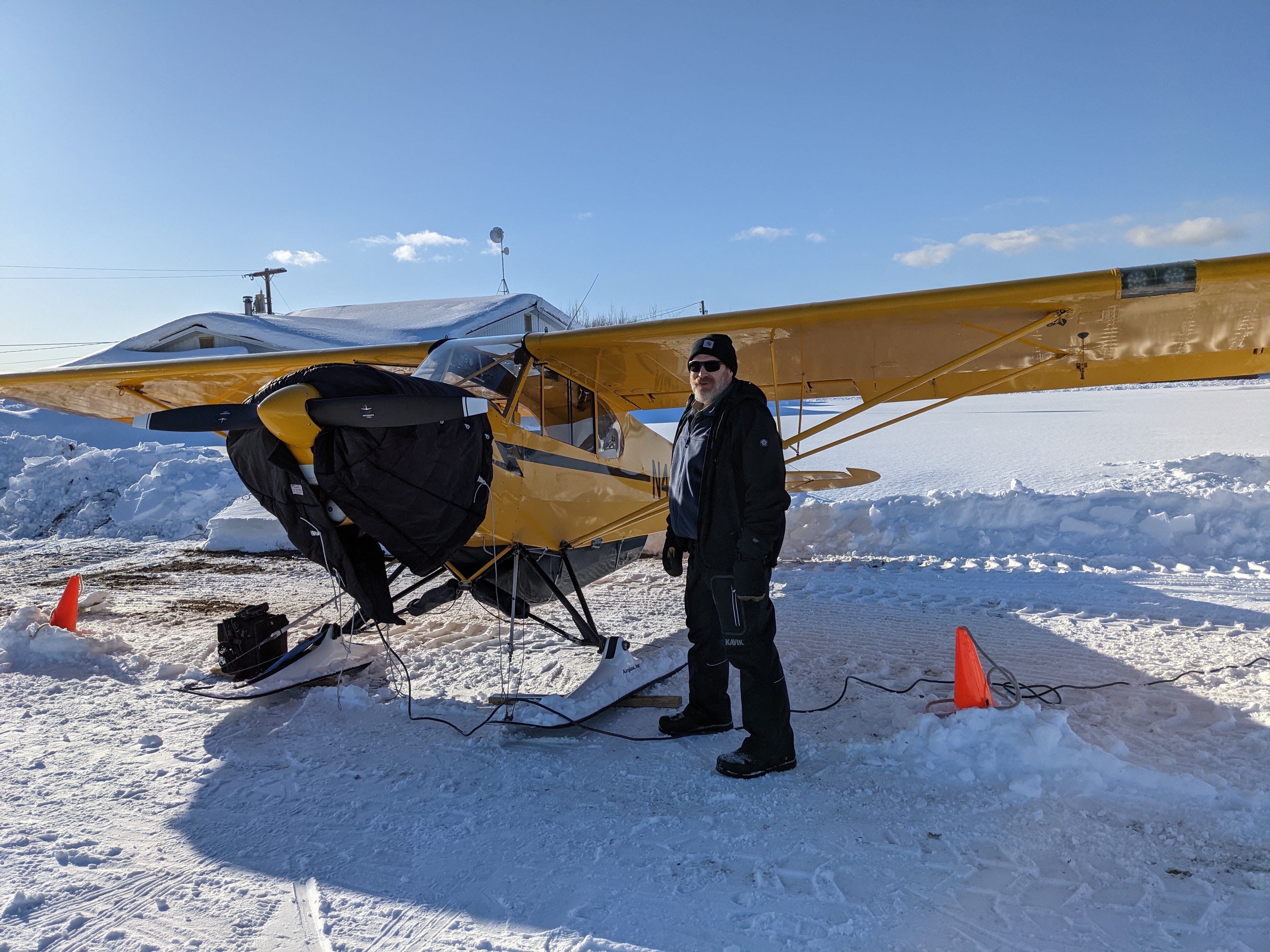 While we preflighted and fueled, Chris talked me through “contingencies.” Whenever you do any backcountry flying, you prepare as though you’re expecting to get stuck wherever you’re going. In that belly pod he had a tent, sleeping bags, cookstove, snowshoes, shovel and a heckalot of other gear. And while the inside of a Super Cub can be surprisingly toasty, we wore all our snow gear (including winter hiking boots, knife, mini survival kit and one PLB each) because there are ways things can go wrong that don’t give you time to salvage things from a plane as you hurry out.